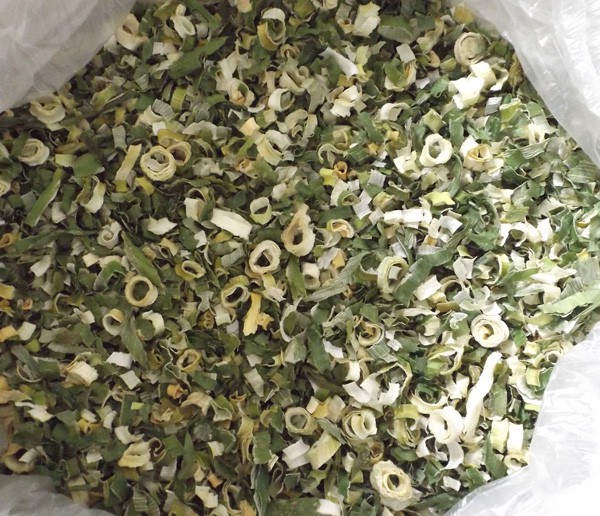 烘干:將甩干的蔥段攤放在烘篩中,裝在烘車層架上,送入干燥機烘干。干燥機在未進料前先行預熱升溫達60℃左右。烘干溫度控制在58~60℃,烘干時間6~7小時。產品含水量降到5%以下。